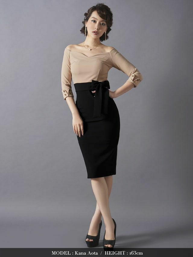 他の画像を見る 高級ブランドドレス 【DEA.by ROBE de FLEURS/ディア】バイカラー×ストレッチ 肩あき タイトひざ丈ドレス(DE1939) ¥ 22,880 税込 在庫切れ 詳細を見る お気に入りに登録する