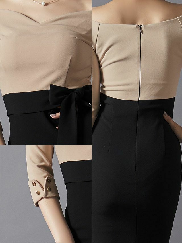 他の画像を見る Lあり!色っぽく上品な印象の大人ドレス♪ 【DEA.by ROBE de FLEURS/ディア】ベルトデザイン 袖あり バイカラー切替 肩あき タイト膝丈ドレス(DE1770) ¥ 23,980 税込 在庫切れ 詳細を見る お気に入りに登録する