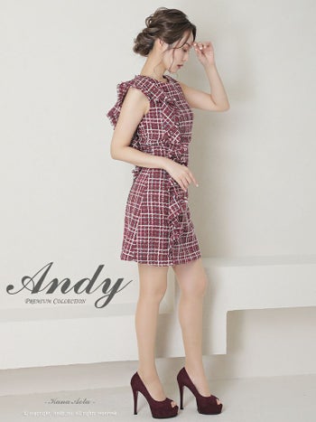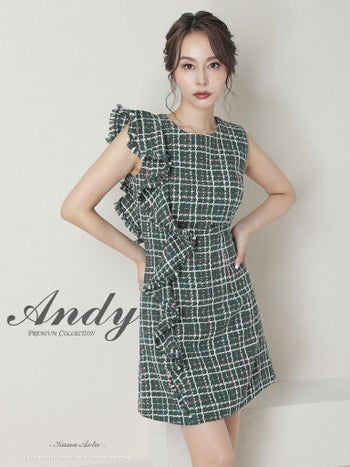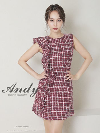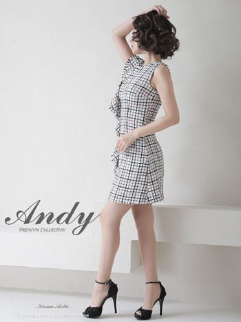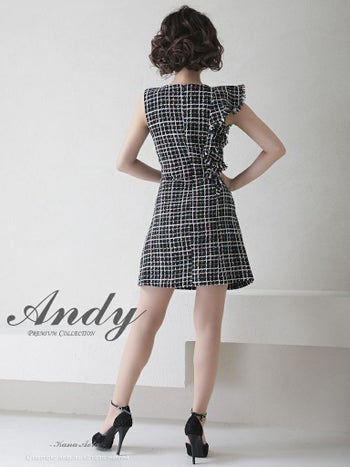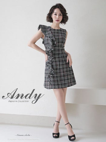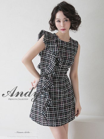 キャバドレス Andy アンディ ツイード フリル チェック柄 台形スカート ノースリーブ フレアミニドレス