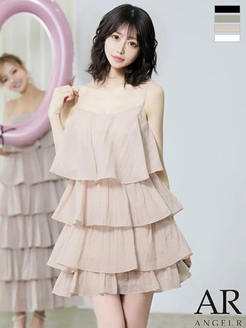 キャバドレス Angel R エンジェルアール フリル ティアード キャミソール ウォッシャブル加工 フレアミニドレス
