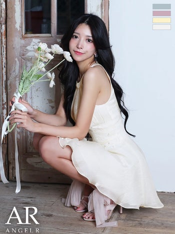 キャバドレス Angel R エンジェルアール フラワーメッシュ ギャザー 刺繍 ホルターネック ウエストリボン フレアミニドレス