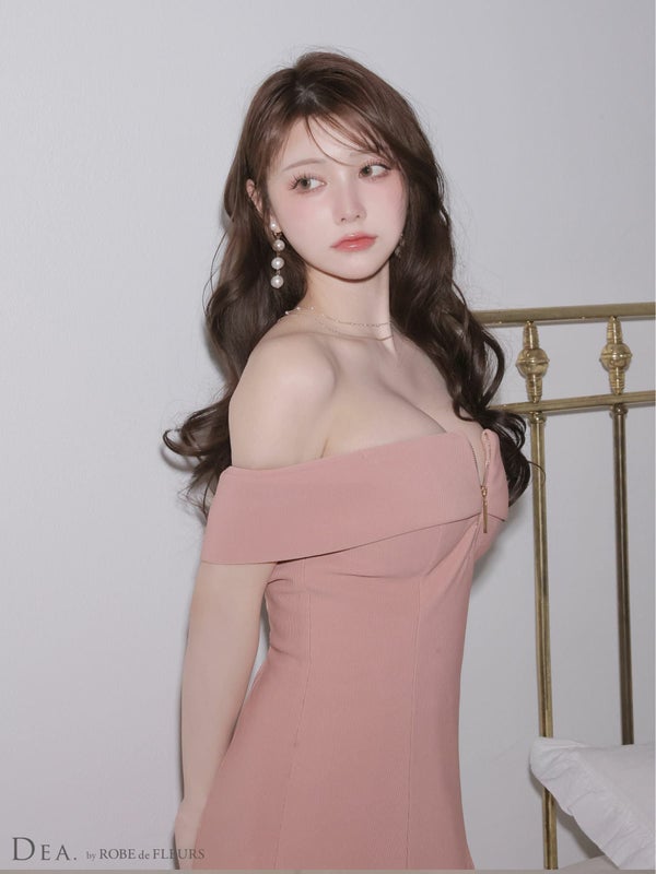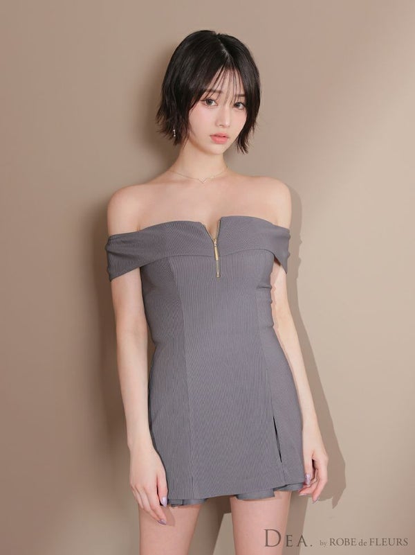 XSあり!絶妙な肌見せがポイント★ 【DEA.by ROBE de FLEURS/ディア】セットアップ シンプル オフショルダー ジップデザイン フレアミニドレス (DE4217)