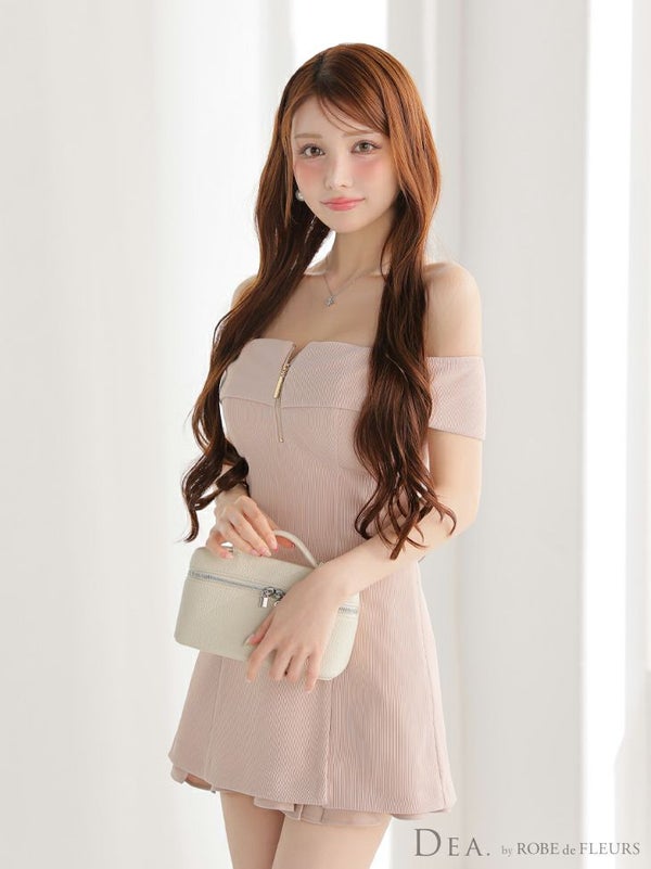 4. 【DEA.by ROBE de FLEURS/ディア】セットアップ シンプル オフショルダー ジップデザイン フレアミニドレス (DE4217)