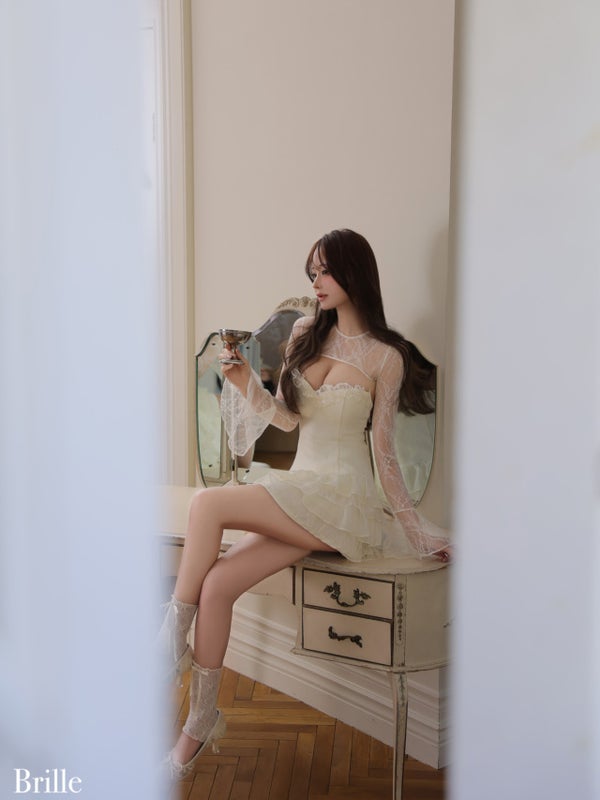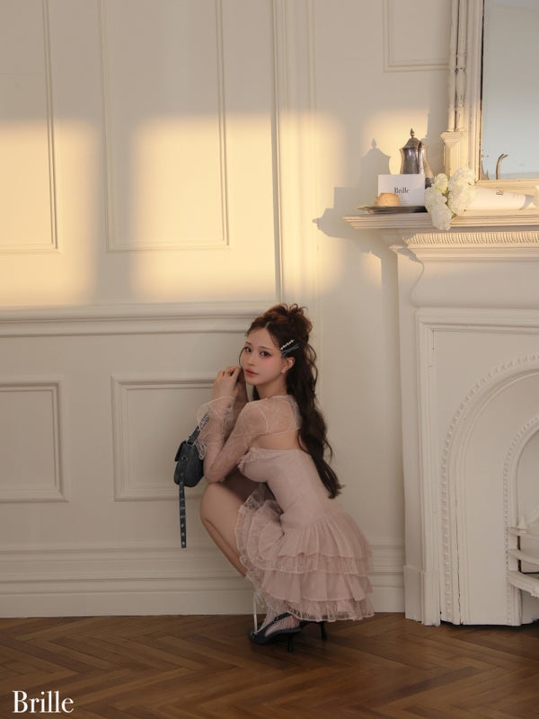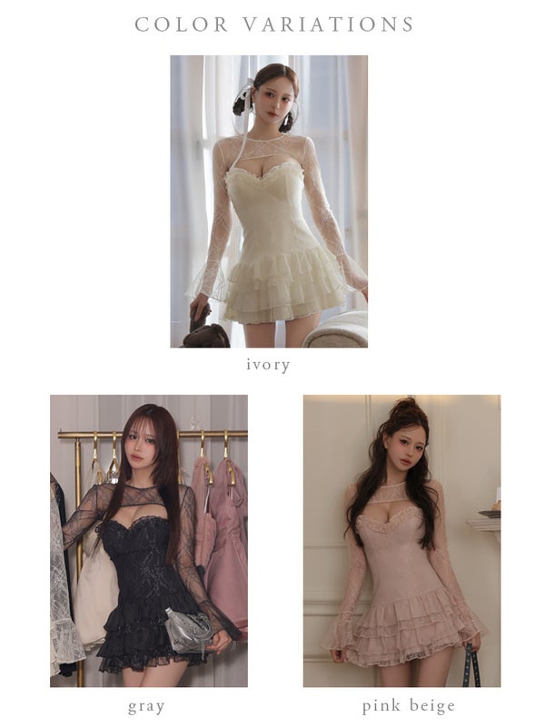 5. 予約商品【8月中旬入荷予定】【Brille/ブリエ】オープンバスト レース シフォン ティアードフリル ボレロ 長袖 フレアミニドレス(brille4161)