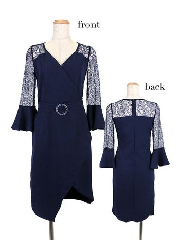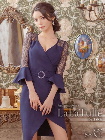 [人気商品再入荷]高品質でロープライスなオリジナルキャバドレス♪ LaLaTulle[ララチュール]×ベルスリーブ ワンカラー 袖あり タイトミニドレス[1color][S/M/L/XL]