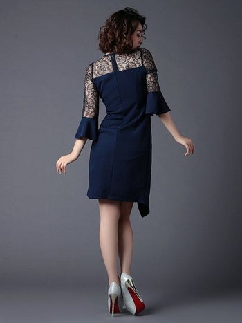 3. LaLaTulle[ララチュール]×ベルスリーブ ワンカラー 袖あり タイトミニドレス[1color][S/M/L/XL]
