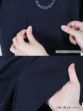 腕周りを華奢に見せる七分袖とベルスリーブの組合わせがエレガンスです。