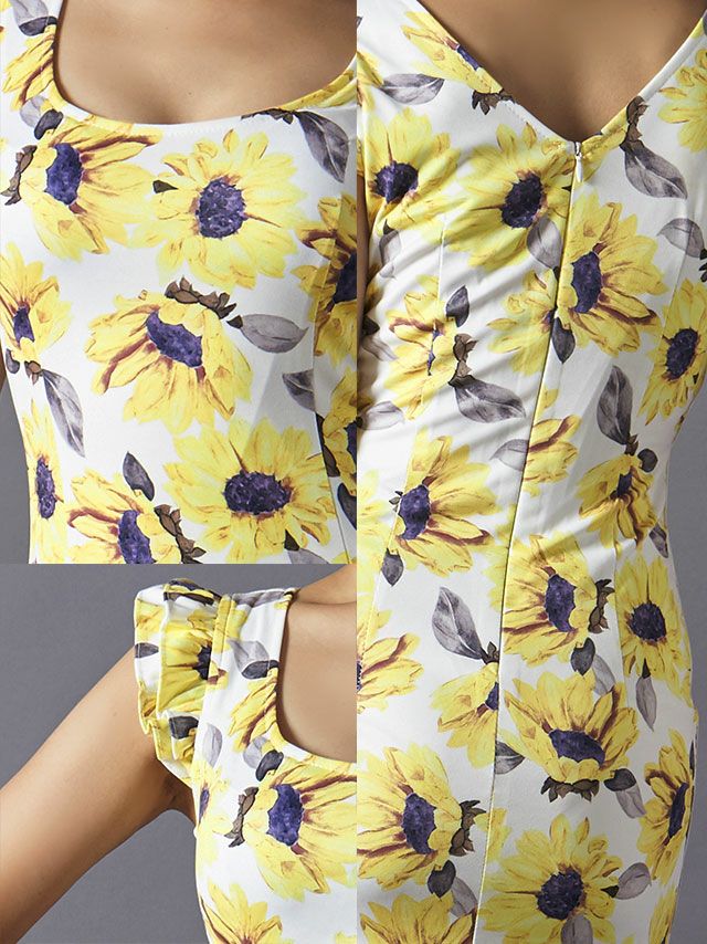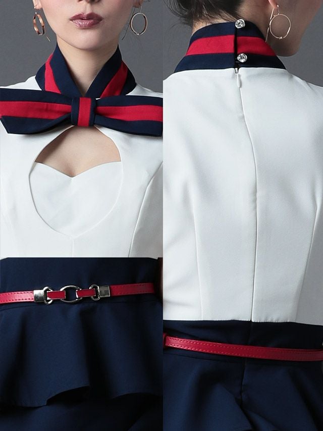・ウエスト部分にフリルがついており、おなか周りもカバーできるペプラムデザイン、