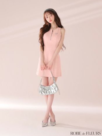 XSあり!可愛さにときめく♡ 【ROBEdeFLEURS/ローブドフルール】ジップデザイン パール ノースリーブ ビジュー リボン フレアミニドレス(fm4214)