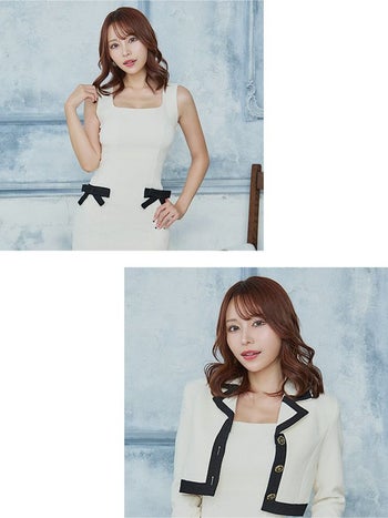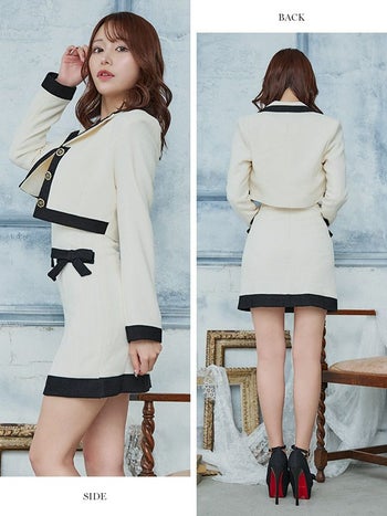 3. 【Anella/アネラ】ジャケット付き リボン 千鳥柄 タイトミニドレス スーツ