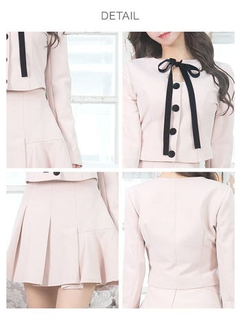 3. 【Anella/アネラ】シンプル リボン ボタン セットアップ 長袖 フレアミニドレス