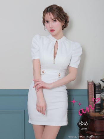 キャバドレス ミニドレス an アン パフスリーブ バックリボン 背中あき ワンカラー セクシーガーリー タイトミニドレス