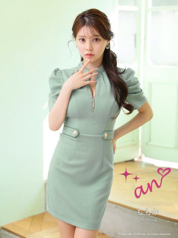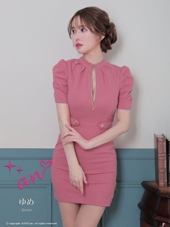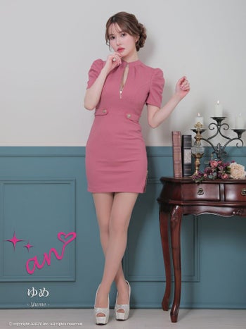 キャバドレス ミニドレス an アン セクシーガーリー バックリボン 背中あき パフスリーブ ワンカラー タイトミニドレス