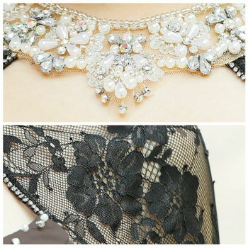 大きく開いた胸元に華やかなビジューが輝きます。