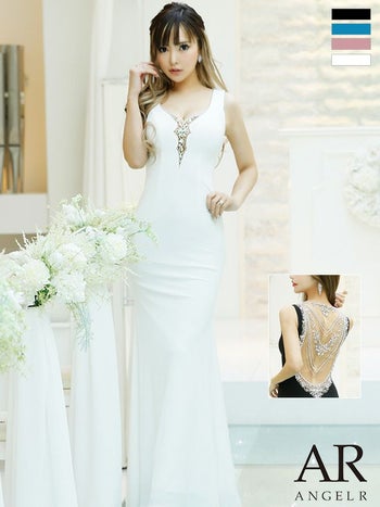 すっきりとした拘りのタイトシルエット♪ 【Angel R/エンジェルアール】スタイルアップ バック フラワー ビジュー タイトロングドレス (AR22309)