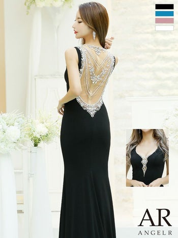 3. 【Angel R/エンジェルアール】スタイルアップ バック フラワー ビジュー タイトロングドレス (AR22309)