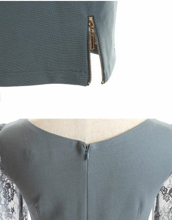 XS~Lあり!ジッパーがセクシー☆ 【Glossy by ROBE de FLEURS/グロッシー】クロス ビジュー レース シースルー 袖あり タイトミニドレス (GL3118)