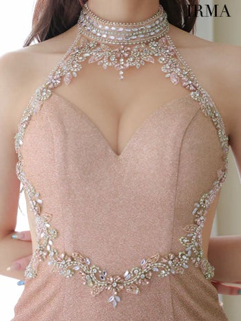 キャバドレス IRMA ホルターネック ビジュー セクシー ハートカット くびれ透け タイトミニドレス