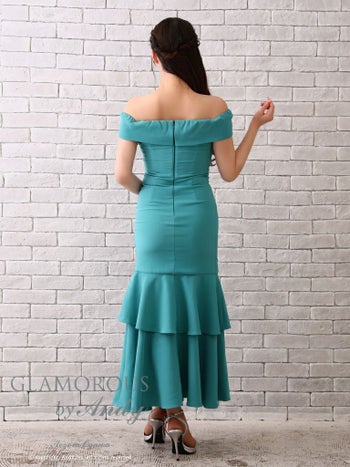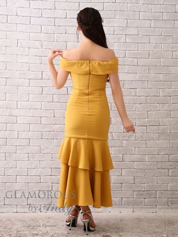 3. 【GLAMOROUS/グラマラス】ジップデザイン アシンメトリー マーメイド スリット フリル ワンカラー オフショルダー 半袖 マーメイドロングドレス(gmsv823)