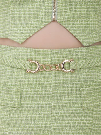 セットアップ 襟付き ジップデザイン 半袖 プリーツ パフスリーブ Aライン フレアミニドレスのメイン画像4