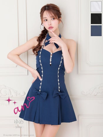 キャバドレス an アン リボン バストカット ビジュー ワンカラー チョーカー ホルターネック フレアミニドレス