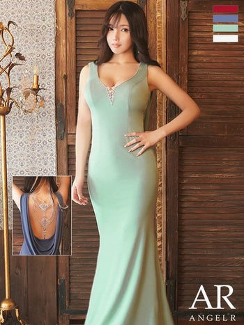 3. 【Angel R/エンジェルアール】エレガント バック ドレープ ビジューデザイン タイトロングドレス(AR22353)