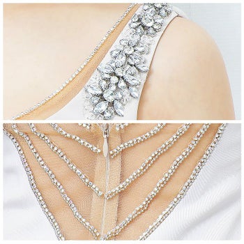バックスタイルに豪華なビジューがデザインされたミニドレス。