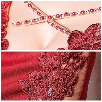 セクシーなバスト部分にビジューをクロスさせ周囲の視線を集めます。