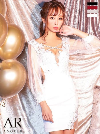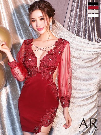 4. 【Angel R/エンジェルアール】スタイリッシュ メッシュスリーブ×フラワー刺繍 袖あり タイトミニドレス (AR21844)