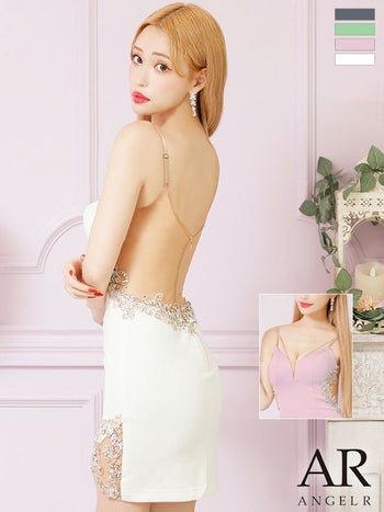 XSあり!サイドからバックにかけて豪華に煌めく☆ SALE【Angel R/エンジェルアール】サイドビジュー バックシースルー オープン メッシュ タイトミニドレス (AR24304)