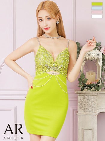 3. SALE【Angel R/エンジェルアール】キャミソール フロント パールチェーン アッパー フラワー パールビジュー タイトミニドレス (AR24802)
