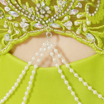 フラワー刺繍 フロント パールチェーン アッパー パールビジュー タイトミニドレス