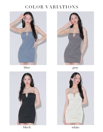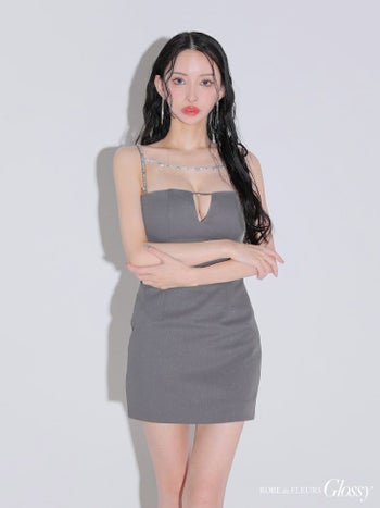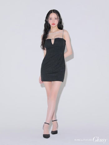 3. 【Glossy by ROBE de FLEURS/グロッシー】デコルテビジュー ラメ バストカット シンプル キャミソール バッククロス タイトミニドレス (GL3590)