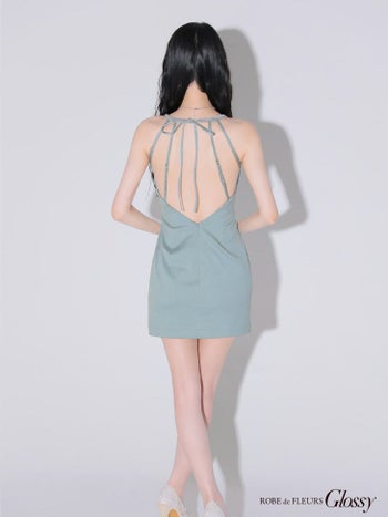 4. 予約商品【2月下旬入荷予定】【Glossy by ROBE de FLEURS/グロッシー】オープンバスト セクシー キャミソール ビジューホルター タイトミニドレス (GL3594)