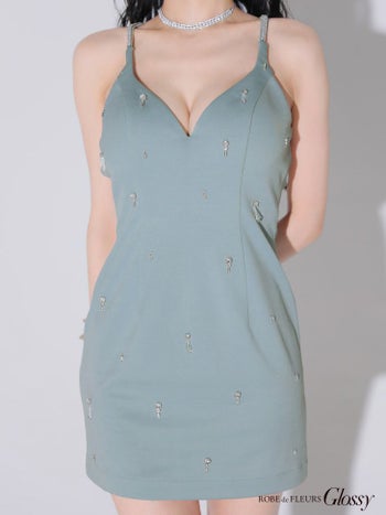 キャバドレス Glossy ROBE de FLEURS グロッシー ローブドフルール オープンバスト セクシー キャミソール ビジューホルター タイトミニドレス