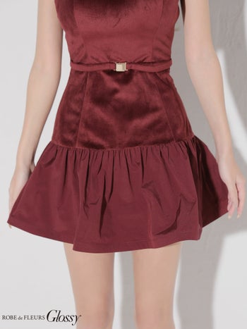 4. 【Glossy by ROBE de FLEURS/グロッシー】 バルーン バックル ベロア キャミソール 2way ベアトップ フレアミニドレス (GL4159)