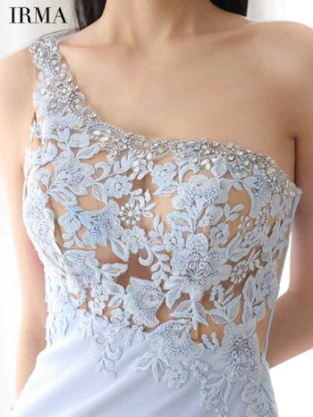 3. 【IRMA/イルマ】ワンショルダー フラワー刺繍 バックレースアップ スリット タイトロングドレス(51855)