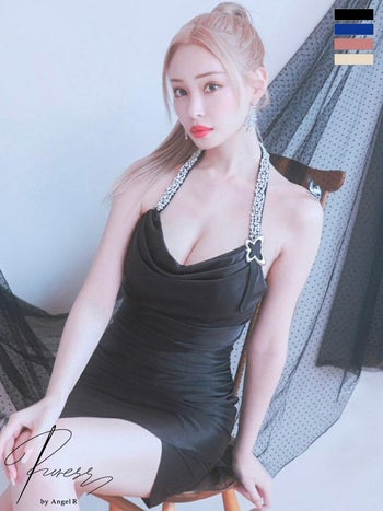 キャバドレス PURESS ショルダービジュー バタフライバックル セクシー オープンバスト ホルターネック タイトミニドレス