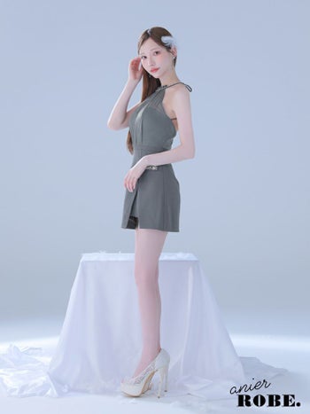 4. 【ANIER./アニエル】サテン ビジュー ホルターネック バックオープン シフォン タイトミニドレス (anier4051)