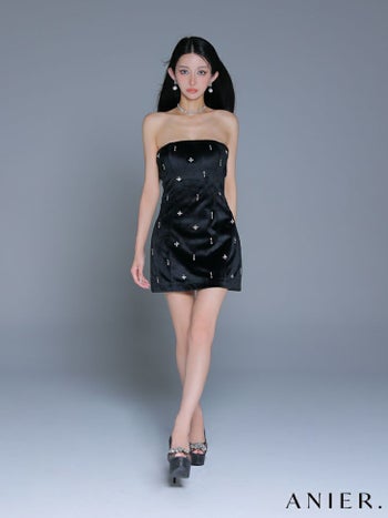4. 【ANIER./アニエル】シンプル ベア ビジュー バックオープン セクシー タイトミニドレス (anier4056)