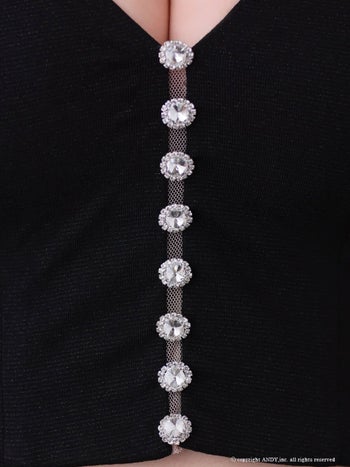 キャバドレス an セットアップ キャミソール バイカラー ビジュー ボタン リボン ティアード フリル フレアミニドレス