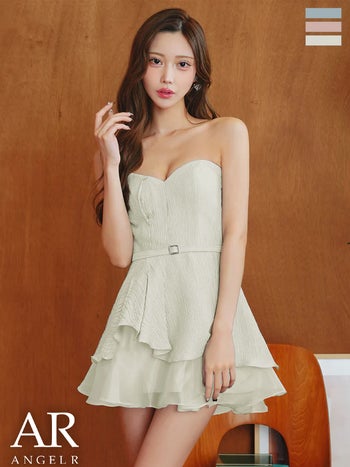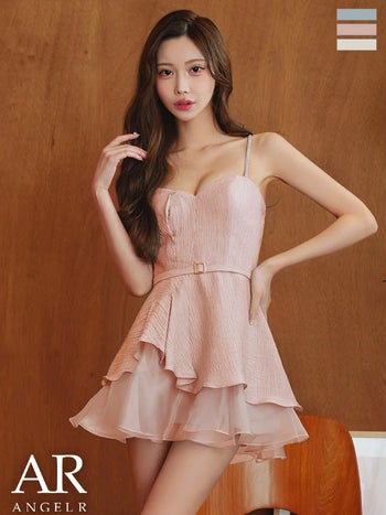 キャバドレス Angel R エンジェルアール 2way ベアトップ キャミソール ウエストベルトデザイン レイヤード フリル フレアミニドレス