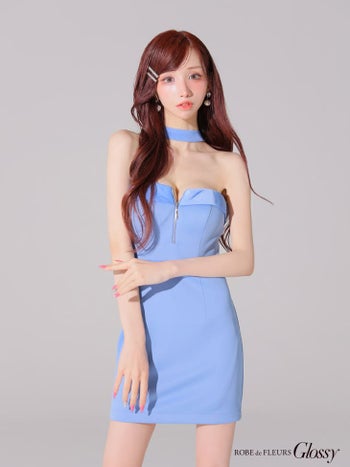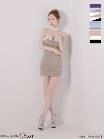 XSあり!チョーカー風デザインがcute♡ 【Glossy by ROBE de FLEURS/グロッシー】ホルターネック ジップデザイン 2way チョーカー風 ワンカラー タイトミニドレス(GL4108)