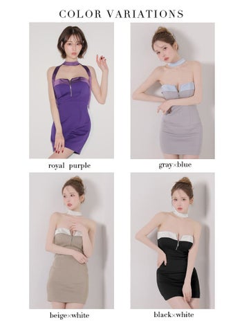 4. 【Glossy by ROBE de FLEURS/グロッシー】ホルターネック ジップデザイン 2way チョーカー風 ワンカラー タイトミニドレス(GL4108)