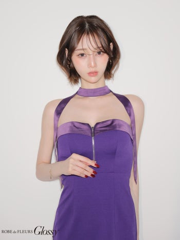 キャバドレス Glossy ROBE de FLEURS グロッシー ローブドフルール ジップデザイン 2way ワンカラー チョーカー風 ホルターネック タイトミニドレス