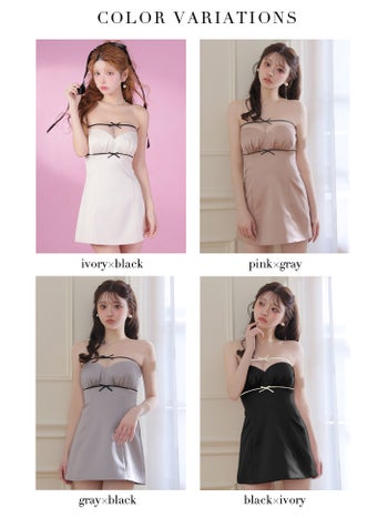 3. 【ROBEdeFLEURS/ローブドフルール】ベアトップ リボン ギャザー サテン オーガンジー タイトミニドレス (fm4648)