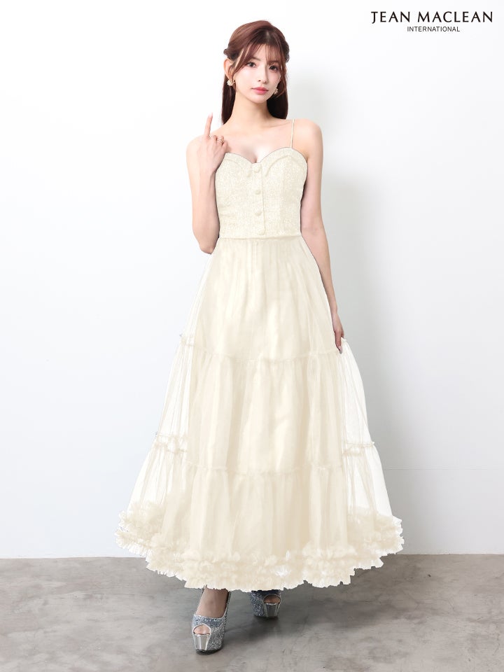 他の画像を見る 透明感溢れる可憐な一着♪ 【JEANMACLEAN/ジャンマクレーン】ハートカット フロントボタン キャミソール ツイード シフォンスカート セットアップ Aラインロングドレス(51995) ¥ 32,780 税込 詳細を見る お気に入りに登録する