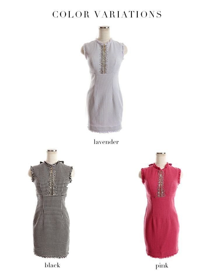 他の画像を見る XSあり!シンプルで高級感◎ 【Glossy by ROBE de FLEURS/グロッシー】フロントジップ チェック柄 バックリボン ツイード バストビジュー タイトミニドレス (GL2720) ¥ 28,380 税込 在庫切れ 詳細を見る お気に入りに登録する