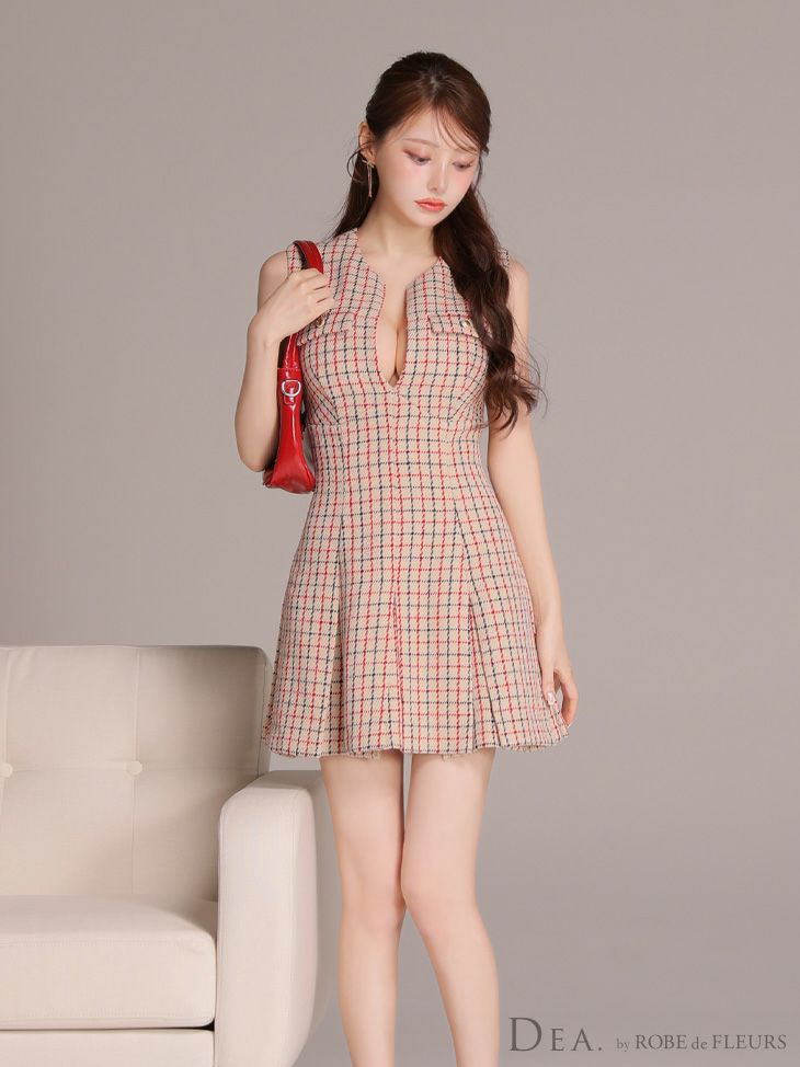 他の画像を見る XSあり!クラシカルな印象を演出★ 【DEA.by ROBE de FLEURS/ディア】バストカット ノースリーブ チェック柄 ツイード プリーツ クラシカル フレアミニドレス (DE4209) ¥ 29,480 税込 詳細を見る お気に入りに登録する