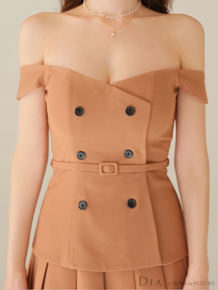 他の画像を見る XSあり!大胆肌見せセットアップ♪ 【DEA.by ROBE de FLEURS/ディア】オフショルダー ダブルボタン セットアップ プリーツスカート ワンカラー ウエストベルト フレアミニドレス (DE4315) ¥ 27,280 税込 詳細を見る お気に入りに登録する